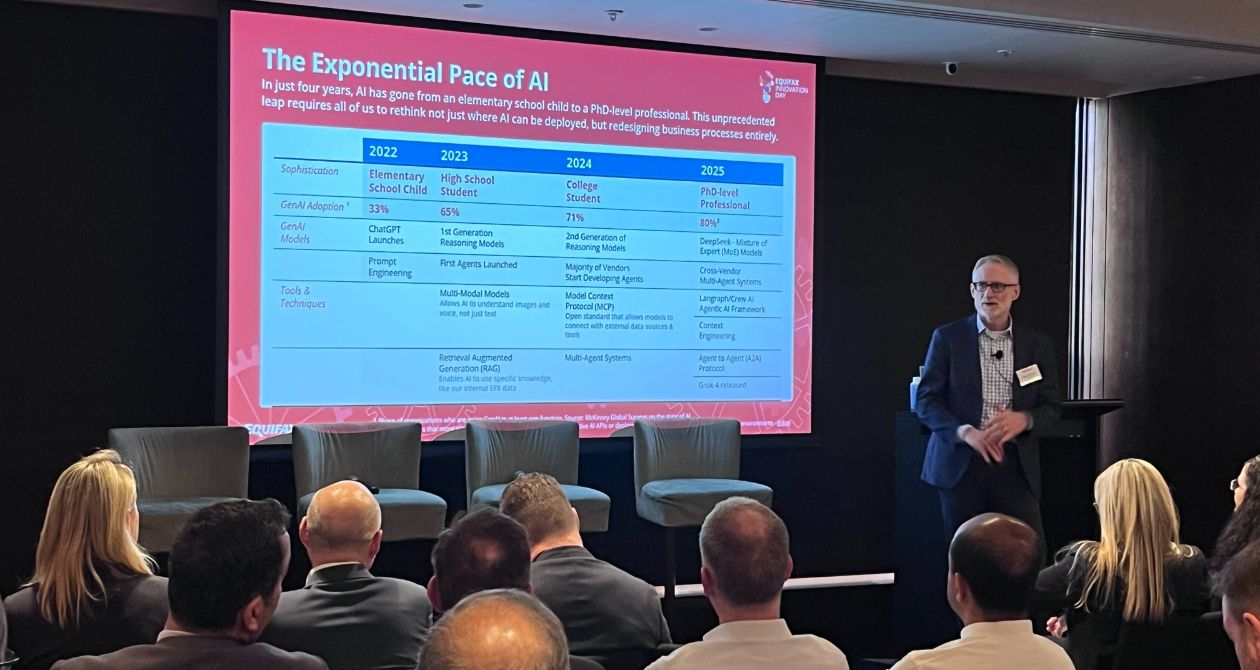 Unleashing the transformative potential of AI was the core theme of our recent Equifax Innovation Day. The event explored how AI is reshaping risk, resilience, consumer experience and growth, offering a unique opportunity to share ideas, network with peers and confront the challenges presented by the exponential pace of AI innovation.