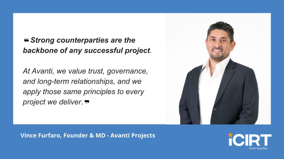 iCIRT rated Avanti Projects achieved a strong ‘Counterparties’ assessment score, reflecting the strength, governance, and track record of its business network.