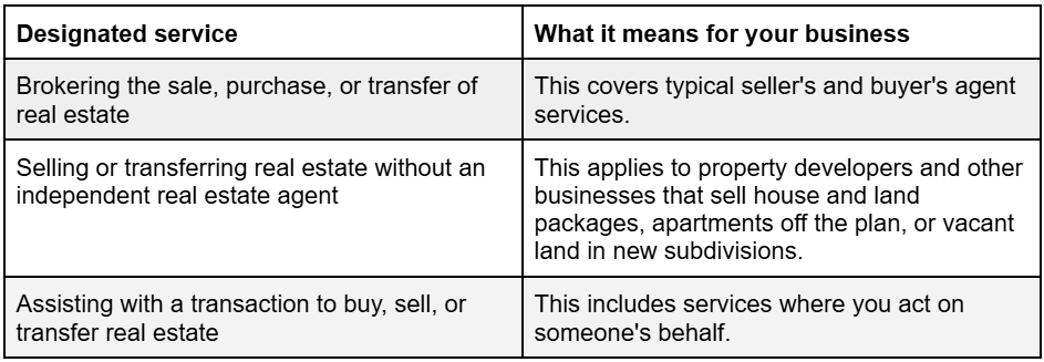 If your real estate agency provides one or more of the following ‘designated services’, the AML/CTF regulations will apply to you: