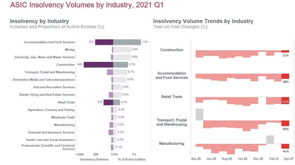 IMAGE 4: ASIC Insolvency Volumes by Industry, 2021 Q1