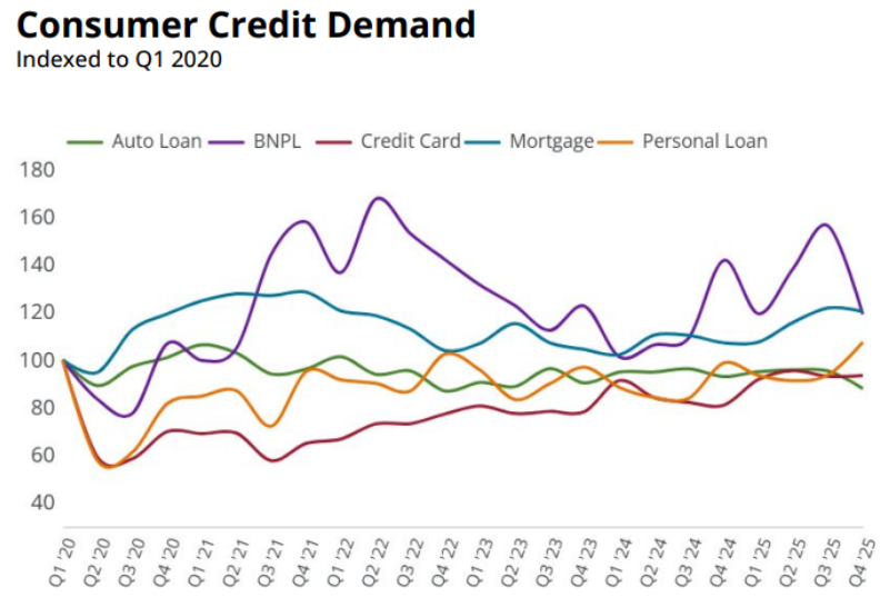 - Auto loan demand decreased by -5.4% (vs Q4 2024)