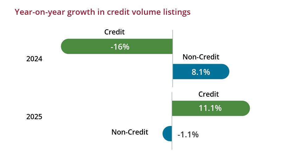 For the past three years, non-credit products dominated fraud listings. However, 2025 saw a significant shift in this long-term trend, with credit fraud volume listings jumping by 11.1% while non-credit listings experienced a slight contraction of -1.1%.