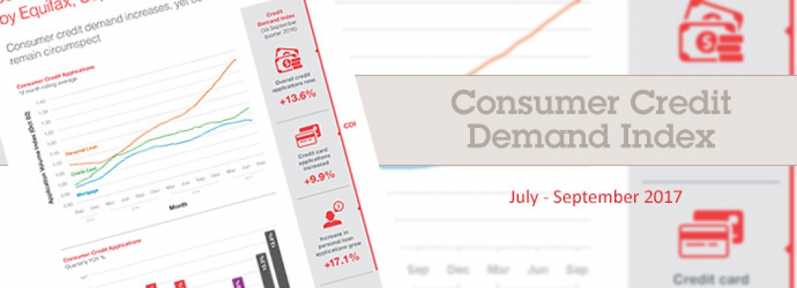 Sydney, Australia, Friday, 10 November 2017: Consumer credit demand rose 13.6% in the September 2017 quarter, according to data from the latest Quarterly Consumer Credit Demand Index by Equifax.